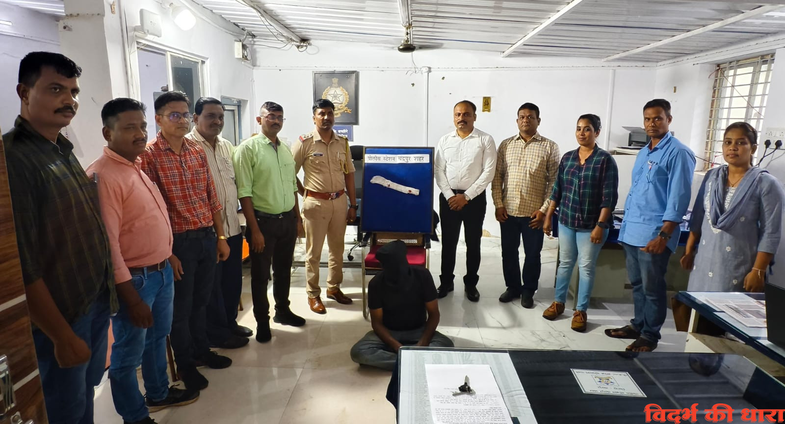 १ जुलाई २०२५ को चंद्रपुर शहर पुलिस स्टेशन के स्पोनी राजेंद्र सोनवने दल के साथ पेट्रोलिंग कर रहे थे। इसी दौरान गणपत भुजाेने बाबूपेठ पुल के नीचे फूले चौंक में धारदार हथियार लेकर घूमने की गुप्त जानकारी पुलिस दल को मिली थी। जानकारी के अनुसार रेकॉर्ड के अपराधी सागर ऊर्फ गणपत भुजाेने को पकड़कर पुलिस ने जांच करने पर गणपत के पास कोयता हथियार लंबाई १६.१ इंच कीमत १०० जप्त किया गया है। शहर पुलिस स्टेशन में सागर ऊर्फ गणपत भुजाेने के विरोध में अपराध क्रमांक ४४७/२०२५ में कलम ४,२५ भारतीय हथियार कानून तहत मामला दर्ज किया गया है। यह कार्यवाही जिला पुलिस अधीक्षक मुम्मका सुदर्शन, एसडीपीओ सुधाकर यादव के मार्गदर्शन में शहर पुलिस स्टेशन पुलिस निरीक्षक निशिकांत रामटेके, स्पोनी राजेंद्र सोनवने, पो उप निरीक्षक दत्तात्रेय कोलते, विलास निकोडे और डीबी दल ने की है।