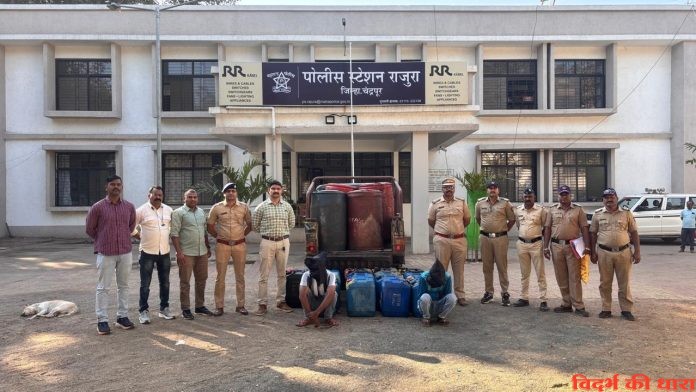 चंद्रपुर जिले के राजुरा पुलिस स्टेशन अंतर्गत १६ जनवरी २०२६ को पुलिस दल पेट्रोलिंग कर रहा था. इसी दरम्यान अवैध रूप से डीजल का बड़ा संग्रहण करने की गुप्त जानकारी पुलिस को मिली थी. जिसमे जानकारी के आधार पर पुलिस ने सास्ती कैंप नंबर १७ में छापा मारकर डीजल का बड़ा संग्रहण जप्त किया है. साथ ही बोलेरो कैंपर वाहन क्र. एम एच ३४ बी झेड ८६६५ के फरार चालक आउट अन्य २ से ३ साथीदार ने कोई भी अनुमति न होने पर भी १ हजार २० लीटर डीजल नागरिको की जान को खतरा होने ऐसे लापरवाही और कोई भी बंदोबस्त न कर डीजल का अवैध संग्रहण करने का पाया गया है. पुलिस ने पंचनामा कर लगभग ९ लाख ९१ हजार ८०० रुपये कीमत का डीजल और संग्रहण में प्रयोग बोलेरो वाहन, प्लास्टिक ड्रम, कैन जप्त की है. इस मामले में राजुरा पुलिस स्टेशन में अपराध क्रमांक १६/२०२६ में कलम २८७,३(५) भारतीय न्याय संहिता तहत आरोपियो के विरोध में मामला दर्ज किया है. मामले की जाँच राजुरा पुलिस कर रही है.